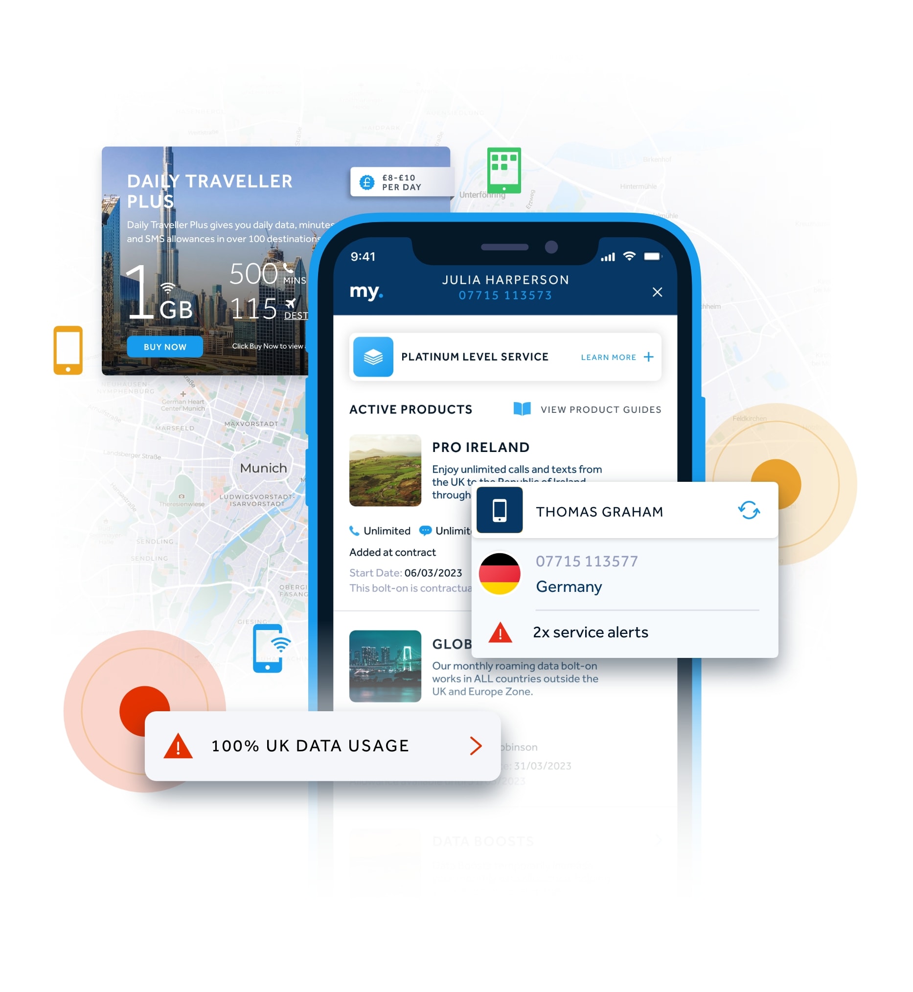 Boost your data, increase your minutes or add roaming packages in a click.